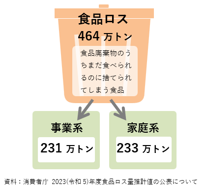 食品ロスには、事業活動を伴って発生する事業系食品ロスと、各家庭から発生する家庭系食品ロスがあります。