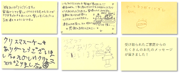 2025年12月に、日本労働組合総連合会山口県連合会(以下、連合山口)さまから、コミュニティフリッジの利用家庭にクリスマスケーキのプレゼントが届きました!